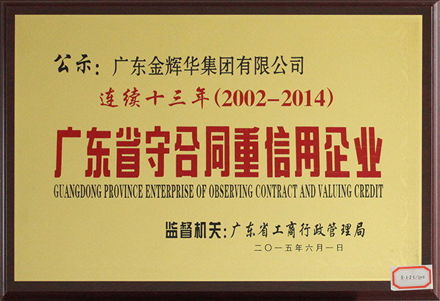 我集團公司連續十三年獲得廣東省"守合同重信用企業"榮譽稱號