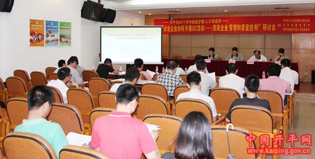 5月16日下午,開平市人才工作領導小組辦公室、市建設商會、市建筑行業人才培養基地聯合在廣東金輝華集團有限公司舉辦“討論企業如何開展QC活動——淺談企業管理和質量控制”研討會,推動和規范建筑業企業QC小組活動的健康開展,提高工程質量管理水平和綜合素質。研討會邀請了市政路橋專業工程師、廣東金輝華集團有限公司技術中心主任詹前進作題為《探討論企業如何開展QC活動——淺談企業管理和質量控制》的專題匯報,結合
