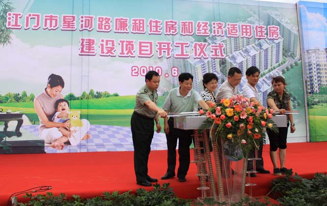 6月25日,我集團公司承建的江門市星河路廉租住房和經濟適用房建設項目開工儀式隆重舉行。市人大常委會副主任陳敏標、副市長鐘軍、市政協副主席趙樹培、市委辦公室李光啟以及市住房和城鄉建設局局長馬克烈等領導和嘉賓出席了開工儀式。 在動工儀式上,馬克烈介紹,星河路廉租住房和經濟適用住房建設項目規劃投資約1.52億元,其中廉租住房約9400萬元,經濟適用住房約5800萬元;規劃總用地面積22988.6平方米