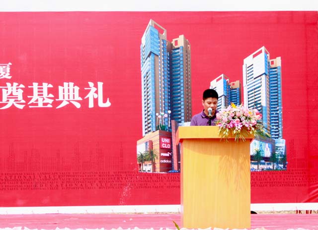 7月27日上午,鑼鼓喧天,喜樂齊鳴,我集團公司綜合大廈項目舉行了盛大的奠基儀式。中國僑聯副主席、廣東省僑聯主席王榮寶,中紀委寧鋒鳴,中國建筑業協會質監分會會長吳松勤,廣東省、江門市有關部門領導、開平市領導黃耀雄、司徒振波、謝超武、莫健文、陳偉成、余榮深、梁和平、馮潤深、林國寧以及集團公司董事局主席周珉興、董事長李甫等領導出席了奠基儀式。 開平市住宅與城鄉建設局局長吳進進主持奠基典禮集團公司董事長李