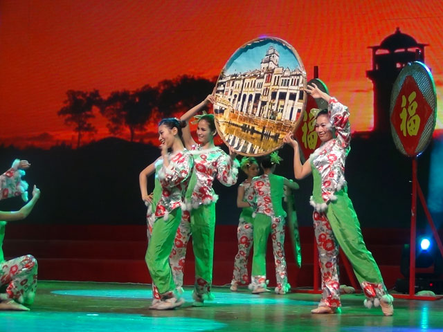 晚會上,我集團公司選送了具有開平僑鄉特色的文藝節目《洋妞看碉樓》,以精采的表演歌頌和贊揚黨的光輝和溫情。