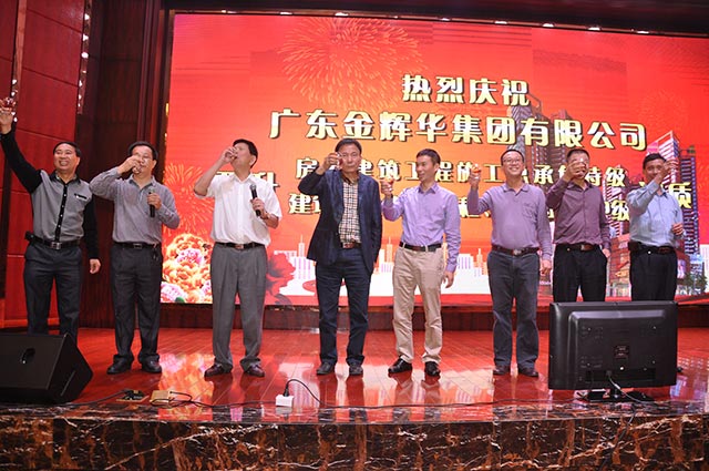 2014年11月22日,廣東金輝華集團有限公司召開我司晉升房屋建筑工程施工總承包特級和建筑行業(yè)(建筑工程、人防工程)甲級資質(zhì)的慶祝會。
