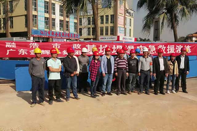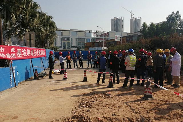 2019年11月21日(星期四)早上9:30,廣東金輝華集團(tuán)公司承建的江門市供水管網(wǎng)擴(kuò)容改造建設(shè)項(xiàng)目勘察設(shè)計(jì)施工總承包工程,在江門市蓬江區(qū)奇榜片區(qū)五邑機(jī)電城旁施工現(xiàn)場,進(jìn)行”基坑坍塌應(yīng)急救援演練”活動(dòng)。演練的目的:1、評(píng)估安全事故的應(yīng)急預(yù)案的響應(yīng)啟動(dòng)執(zhí)行力和響應(yīng)及時(shí)性,分析預(yù)案內(nèi)容的針對(duì)性和真實(shí)性;2、檢驗(yàn)應(yīng)急響應(yīng)人員對(duì)應(yīng)急預(yù)案的了解及實(shí)際操作熟悉能力,對(duì)應(yīng)急物資的使用熟悉程度,評(píng)估應(yīng)急知識(shí)培訓(xùn)的效果,分析培訓(xùn)需求,同時(shí)作為一種培訓(xùn)手段,通過調(diào)整演練難度,進(jìn)一步提高應(yīng)急響應(yīng)人員的綜合素質(zhì)能力,提高全員安全意識(shí)。