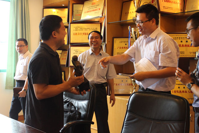 圖為江門市國稅局黨委辦公室主任錢明雄對我司的企業文化表示贊同,留影紀念