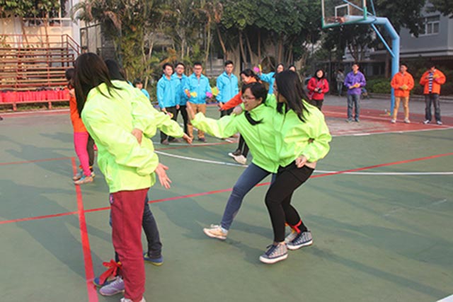 本次趣味運動會采取大學生村官和金輝華集團黨團員代表混合組隊的形式,組成4隊開展比賽。比賽項目有齊心協力、二人三足接力、搶凳仔、義氣踢毽和全心傳意。