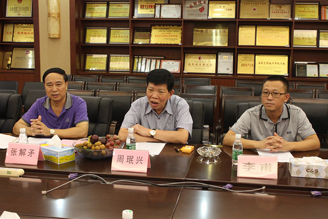 根據江門市委組織部、市“兩新”組織黨工委關于開展新一輪機關黨建帶“兩新”黨建結對共建活動的安排,2015.7.14日江門市工商局容新榮局長帶隊到我司進行座談交流傳經,了解企業的需求,為今后共建活動各階段工作的開展打下基礎。開平市工商局張永健局長與長沙街道黨工委委員荊筱磊也一起參加。