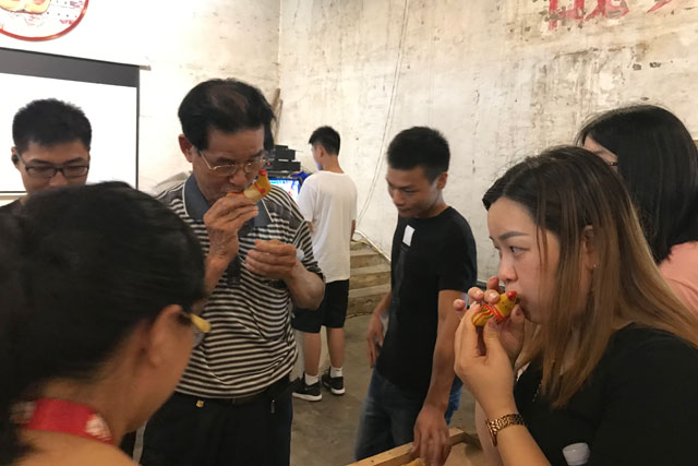 最后全體人員開車前往水口鎮聯竹村參觀開平非物質文化鎮濠泥雞體驗展。