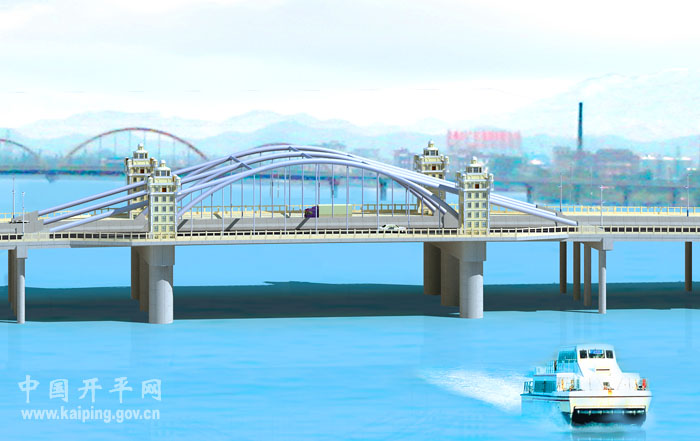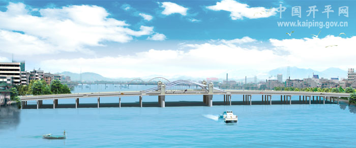 潭江大橋是我市城區建設時間最早的大型橋梁之一,是往來長沙、新昌最繁忙的交通樞紐,現在的潭江大橋分兩個時期建成,前期部分建于1963年,后期部分建于1978年。經過40多年的使用,兩部分的橋梁都存在不同程度的損壞,其中前期建的橋梁2004年鑒定為危橋。2006年市委、市政府決定在原址重建潭江大橋。新設計的潭江大橋總長328米,橋寬31.5米,雙向6車道,共15跨,主跨為60米,通航孔凈高不小于5米,通航孔凈寬46米。新橋施工招標中標價約為5564萬元,計劃2011年上半年完工。新橋設計新穎,充分融合了開平碉樓文化元素,建成后對解決目前城區交通擁擠的現狀、對建設生態宜居城市、繁榮城市經濟將產生積極重要作用,是三埠城區的標志性建筑之一。