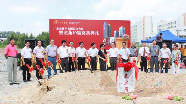 集團公司董事長李甫在奠基儀式上介紹說:“廣東金輝華集團綜合大廈是集團公司省級技術中心的辦公樓和專家樓,它的建設是開平市委、市政府提出的打造開平市城市標志性建筑的一項重要舉措,是金輝華集團爭創省級新技術應用示范工程及國家級優質工程的項目。在市委市政府及有關主管部門的大力支持和關懷下,該項目計劃在兩年內竣工并投入使用?!?